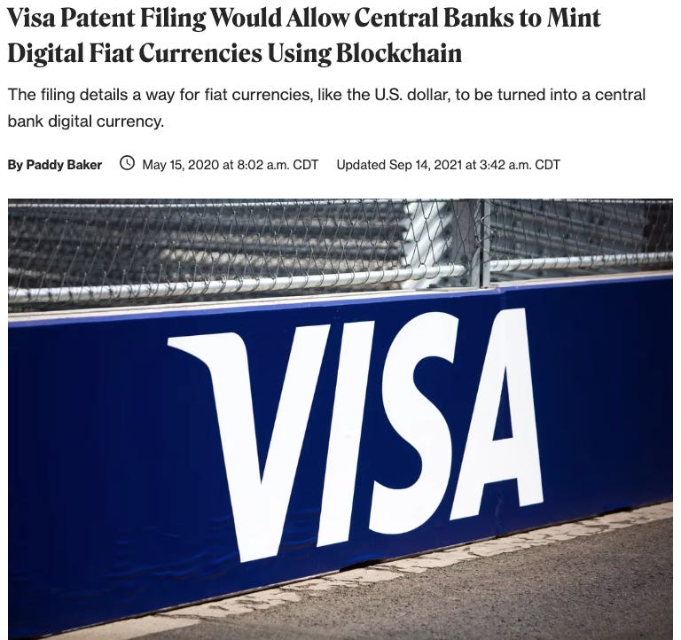 A few weeks later another patent was filed by Visa. This patent develops a “digital fiat currency,” and the most alarming section of the patent states it will “remove physical cash from circulation in a fiat currency system.” In section 7 of the patent it goes even further, stating “the removal of physical currency from circulation includes actively destroying it.”